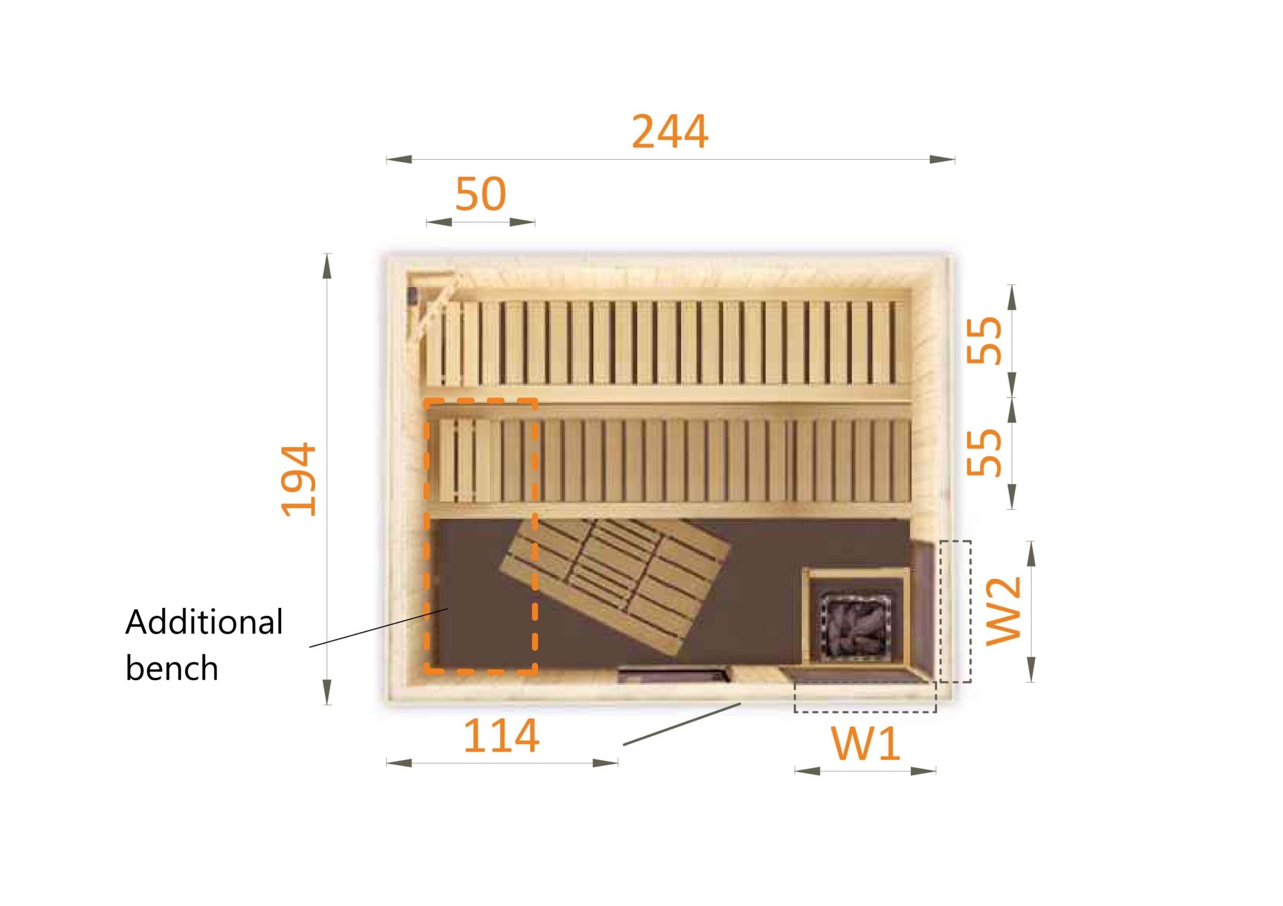 Finnish Sauna with Furnace GOBI B 2450x1950x1990mm