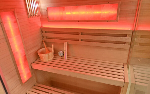 Relaxing and anti-stress effect: Being in a sauna with Himalayan salt stones can have a relaxing and anti-stress effect. Himalayan brine contains minerals such as magnesium, which is known for its relaxing and tension-relieving properties. During a sauna session, the heat combined with the salt particles released can promote overall relaxation of the body and mind, reducing stress.