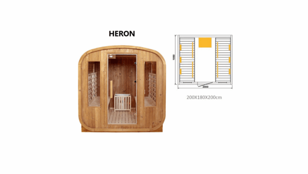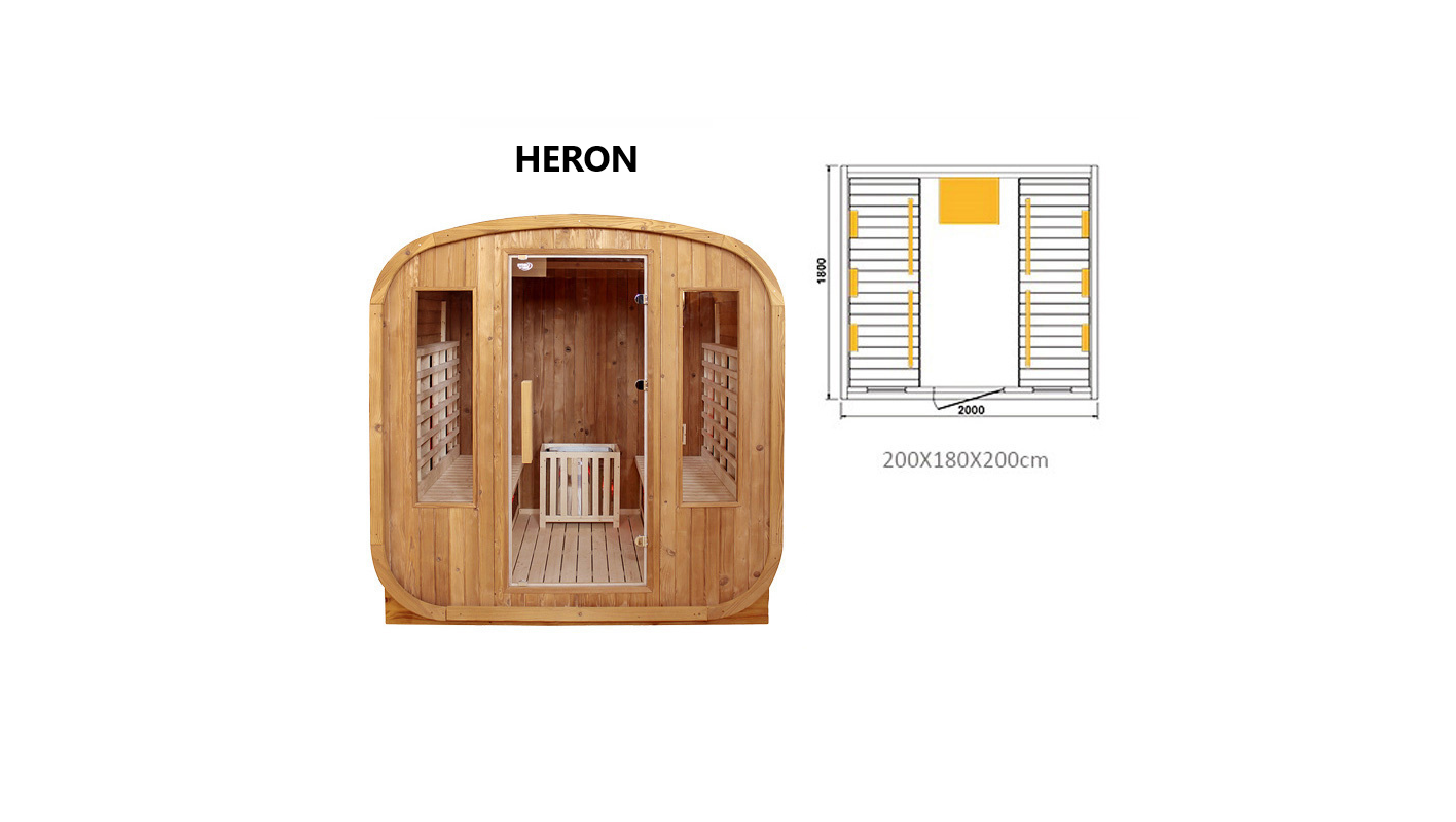 Discover the excellence and versatility of the 2-in-1 HERON sauna, which combines a traditional Finnish sauna with modern infrared technology, offering a unique blend of relaxation and therapeutic benefits for your body and mind. Made from high-quality spruce wood, this sauna brings luxury and functionality to your garden.