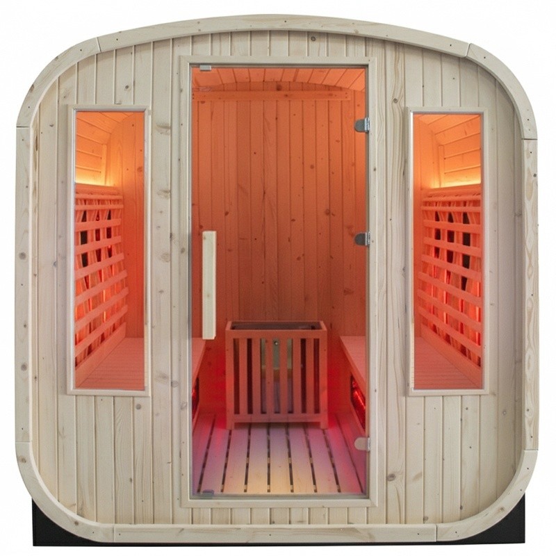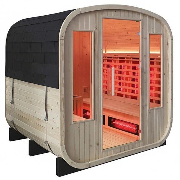 HERON Natural Wood 4-6 PERSON OUTDOOR COMBO SAUNA – FINNISH & INFRARED BARREL SAUNA 180×200 CM 2-IN-1