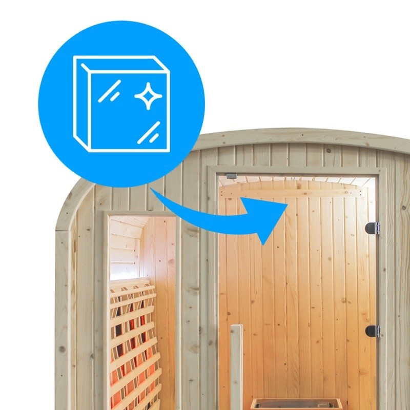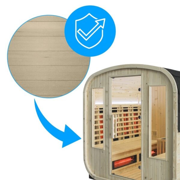 The sauna is equipped with high-quality infrared heaters with a lifespan exceeding 10,000 hours.