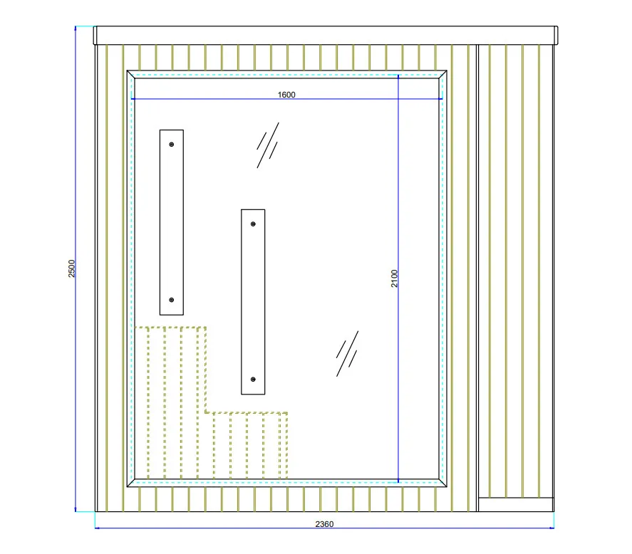 This construction method enhances the floor’s structural integrity and thermal insulation, providing a solid foundation for the sauna.