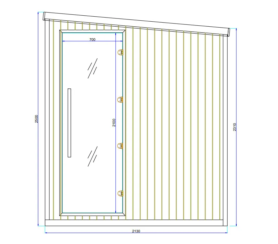The construction is crafted from premium-grade Canadian spruce, renowned for its knot-free quality, ensuring exceptional durability, strength, and an aesthetically pleasing, uniform appearance. This type of wood not only captivates visually but also boasts enhanced resistance to deformation, making it an ideal material for sauna construction. Its unique structure performs excellently in environments exposed to fluctuating temperature and humidity conditions, providing lasting durability and user comfort for years to come.