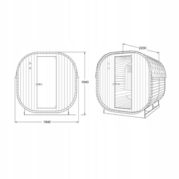 Outdoor Barrel Sauna DINAH-L 2200 × 1840 mm