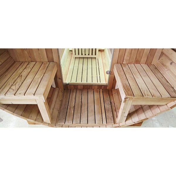 Benches – 6 seating areas: 2 outside the sauna and 4 inside