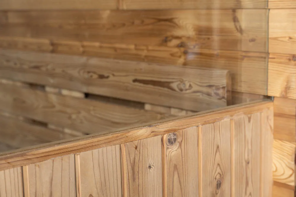 After manual processing, the wood surface becomes visibly smooth and acquires a subtle shine. Additionally, it ensures skin safety for sauna users, eliminating the risk of possible irritations or injuries.