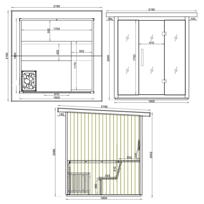 Finnish Sauna Outdoor PUERTO 1800 x 1800 x 2000mm