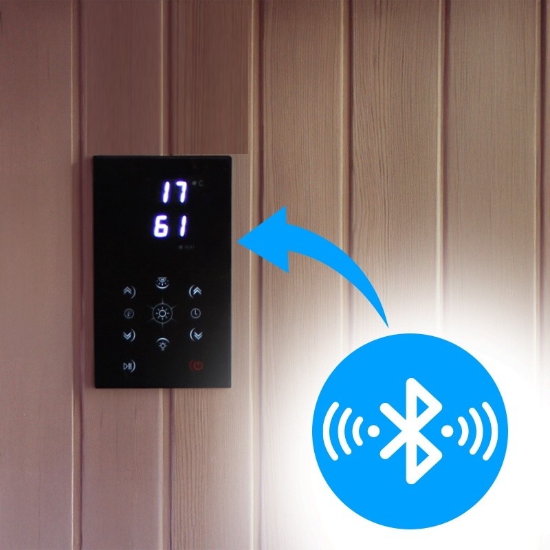 The Puerto sauna is enriched with multimedia features such as Wi-Fi, Bluetooth, FM, and MP3, allowing you to create a unique atmosphere and relax to your favourite music, natural sounds, or meditation sessions.