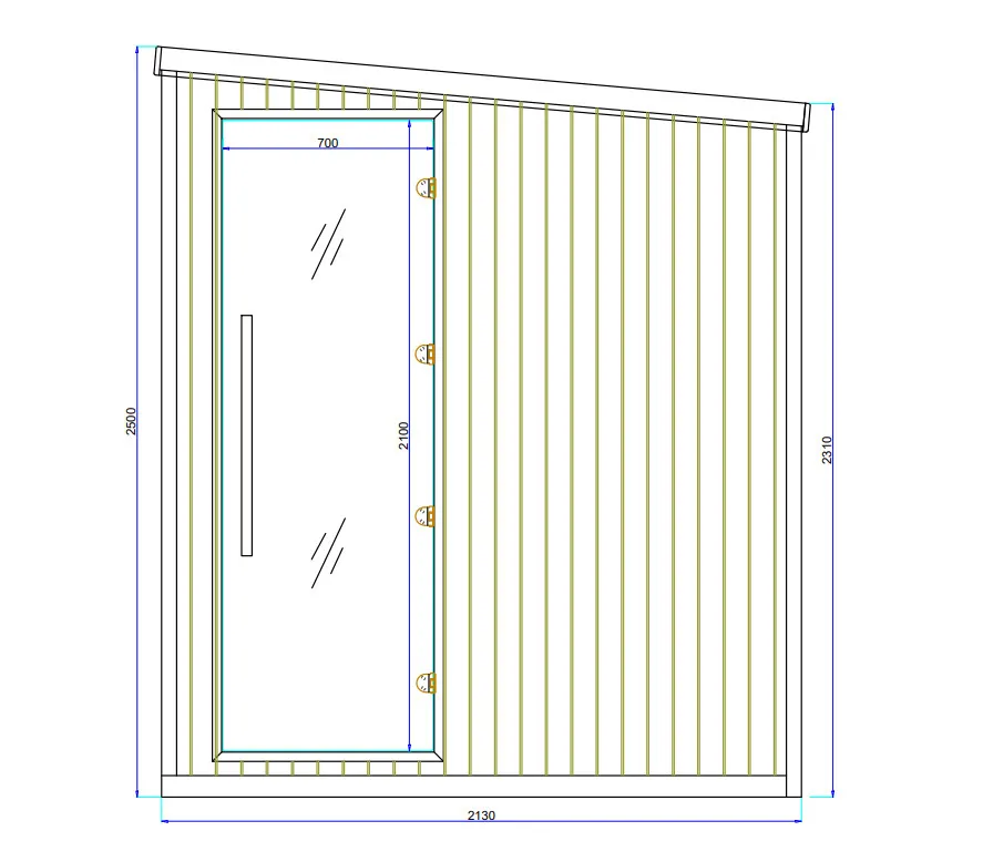 The construction is crafted from premium-grade Canadian spruce, renowned for its knot-free quality, ensuring exceptional durability, strength, and an aesthetically pleasing, uniform appearance. This type of wood not only captivates visually but also boasts enhanced resistance to deformation, making it an ideal material for sauna construction. Its unique structure performs excellently in environments exposed to fluctuating temperature and humidity conditions, providing lasting durability and user comfort for years to come.