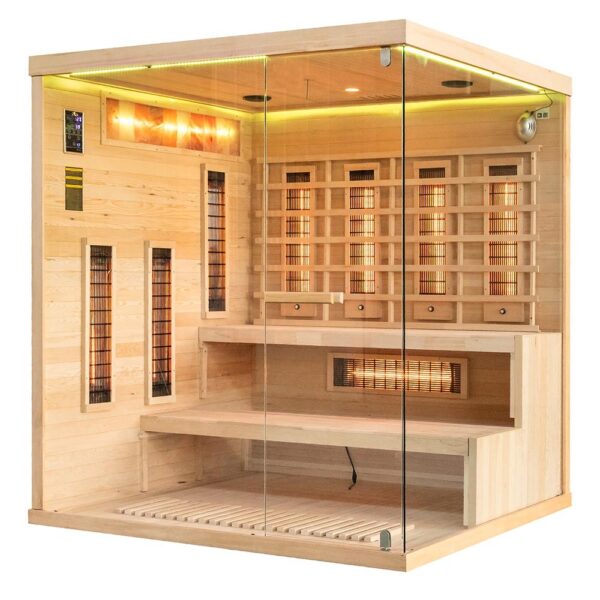 The Beverly infrared sauna with Himalayan salt stone is a perfect choice for families or couples seeking an elegant, functional, and therapeutic home spa. With its blend of modern infrared heating technology, illuminated salt therapy, and ergonomic design, it delivers detoxification, relaxation, and improved health in one compact yet spacious unit.