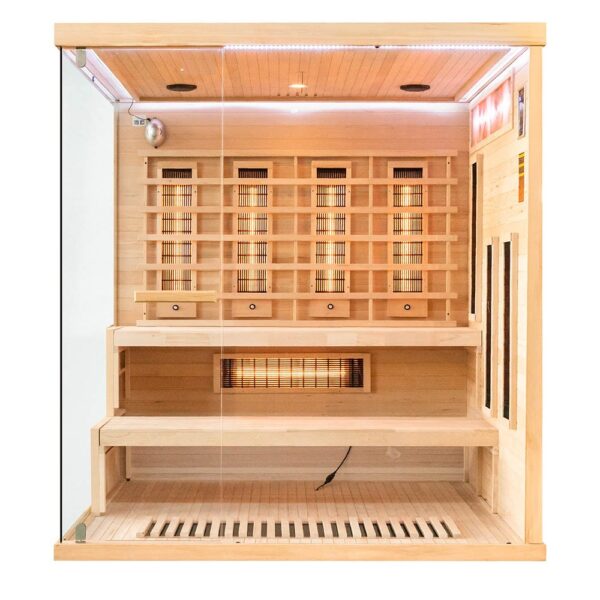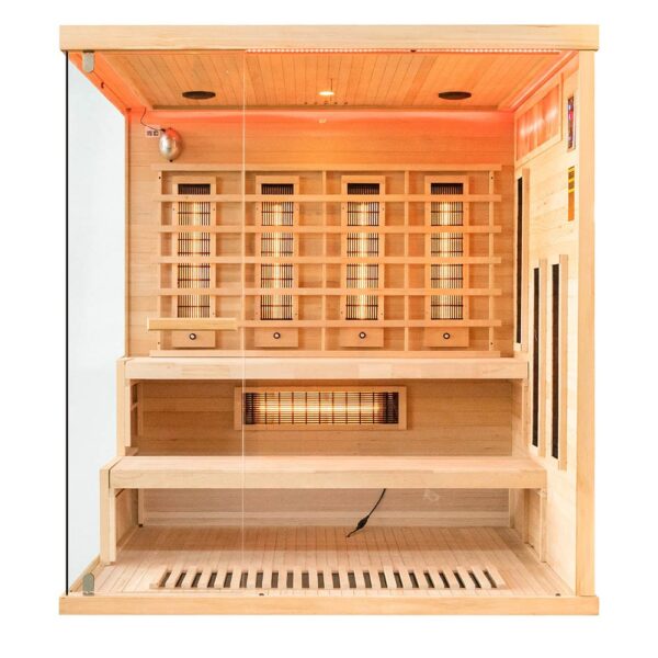 The Beverly infrared sauna with Himalayan salt stone is a perfect choice for families or couples seeking an elegant, functional, and therapeutic home spa. With its blend of modern infrared heating technology, illuminated salt therapy, and ergonomic design, it delivers detoxification, relaxation, and improved health in one compact yet spacious unit.