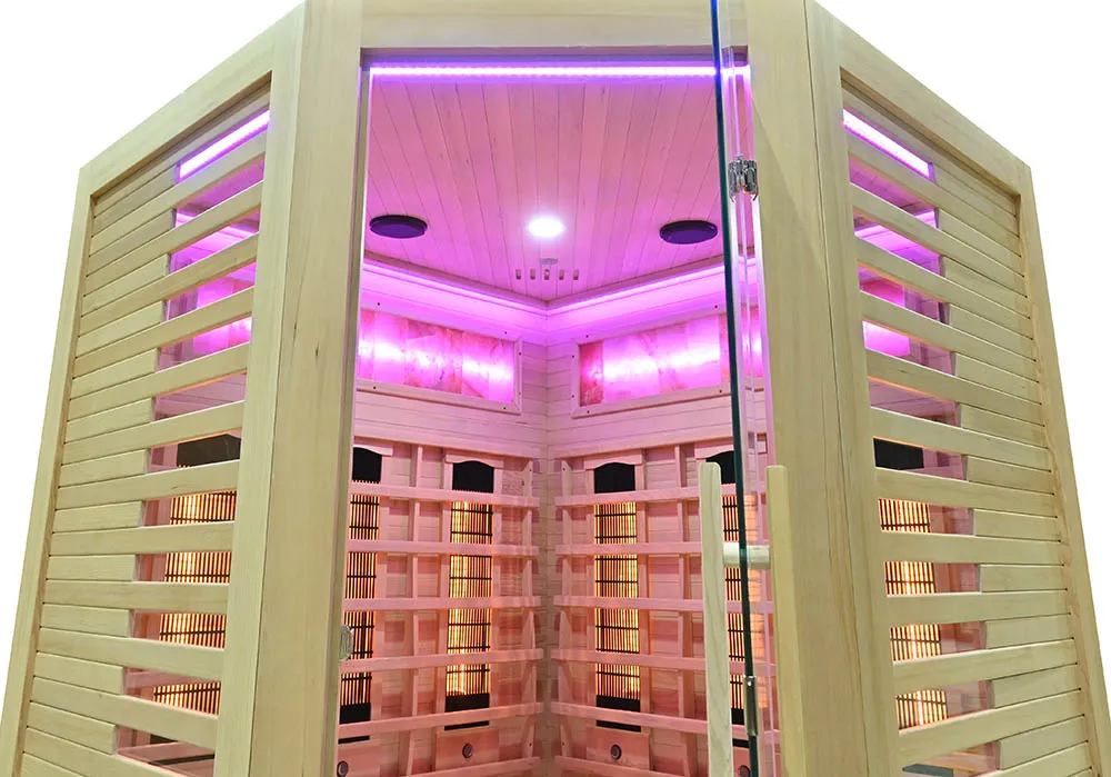 - Sauna Lighting: 1 LED light mounted on the interior roof (single color)