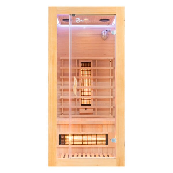 A convenient dual control panel (inside and outside the sauna) provides full operation comfort, while the ionizer and temperature sensor enhance safety and air quality. Entertainment and relaxation are supported by Bluetooth connectivity, a radio, and two built-in speakers, allowing you to enjoy music or podcasts during each session.