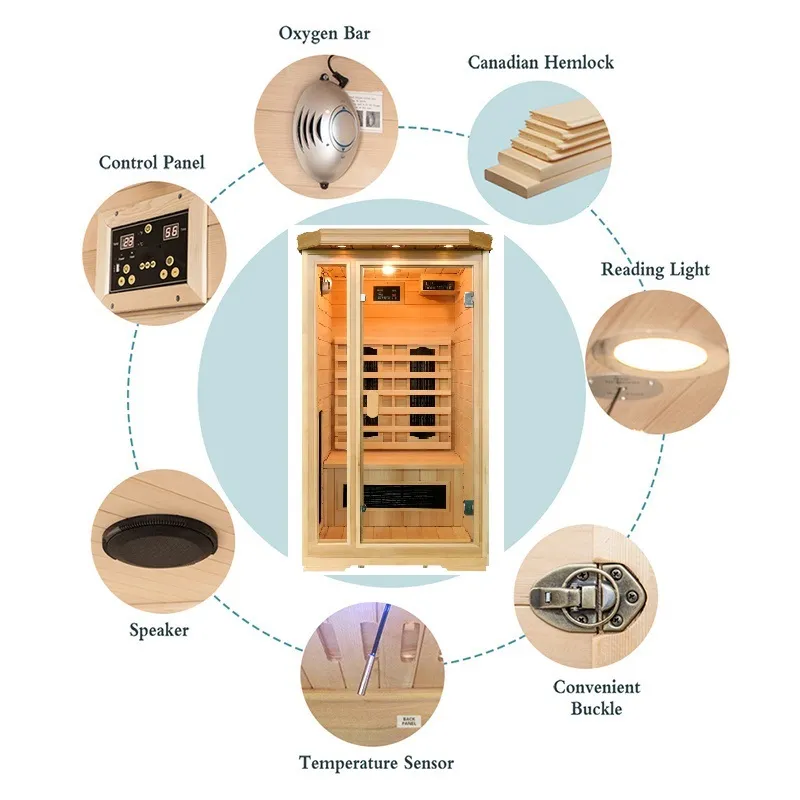Infrared Sauna Jamaica mini 900×900×1900 mm with 5 Quartz Heaters,