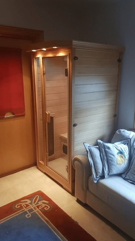 The heat in the IR cabin is directed directly to the body. Only 20% heats the cabin’s atmosphere. The heat is identical to that produced by the human body, similar to solar heat but with harmful UV radiation eliminated.