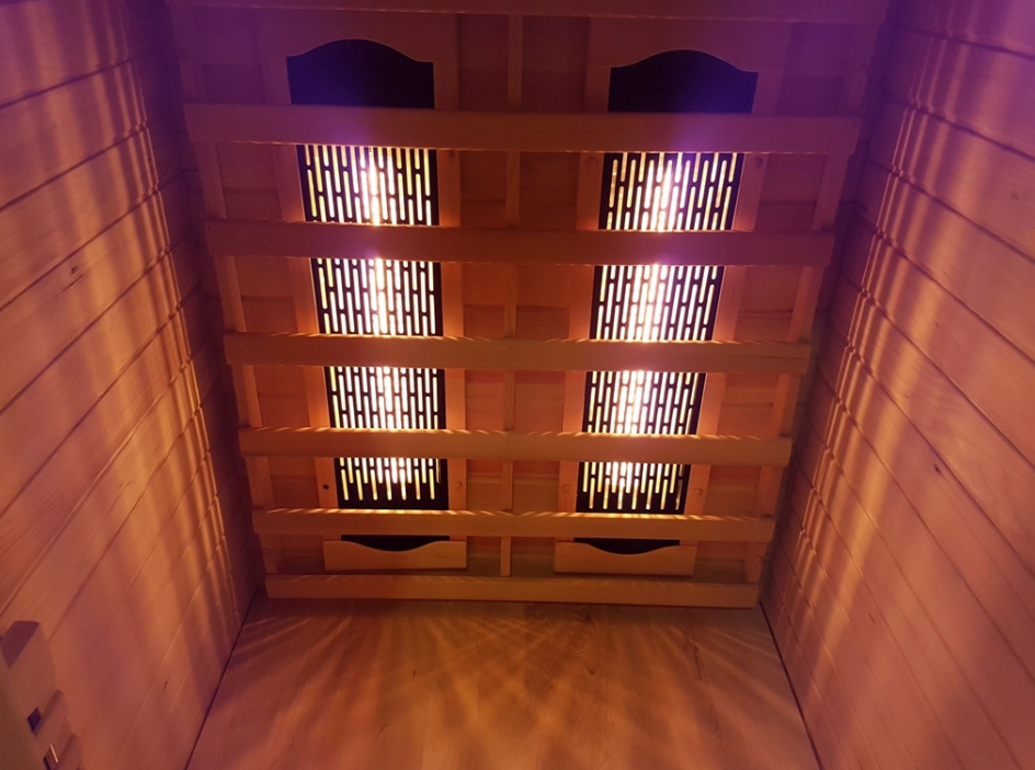 The heat in the IR cabin is directed directly to the body. Only 20% heats the cabin’s atmosphere. The heat is identical to that produced by the human body, similar to solar heat but with harmful UV radiation eliminated.