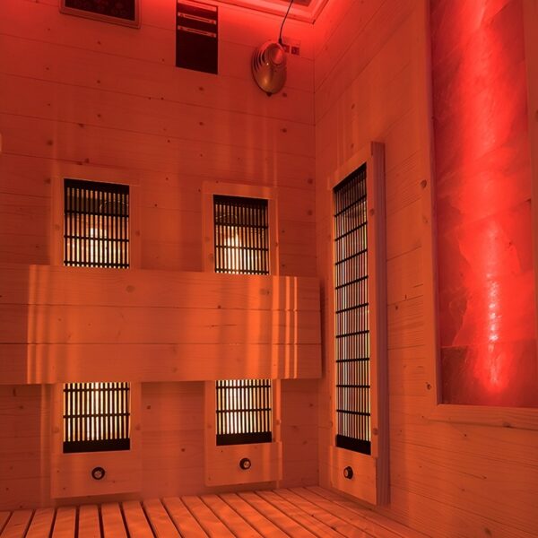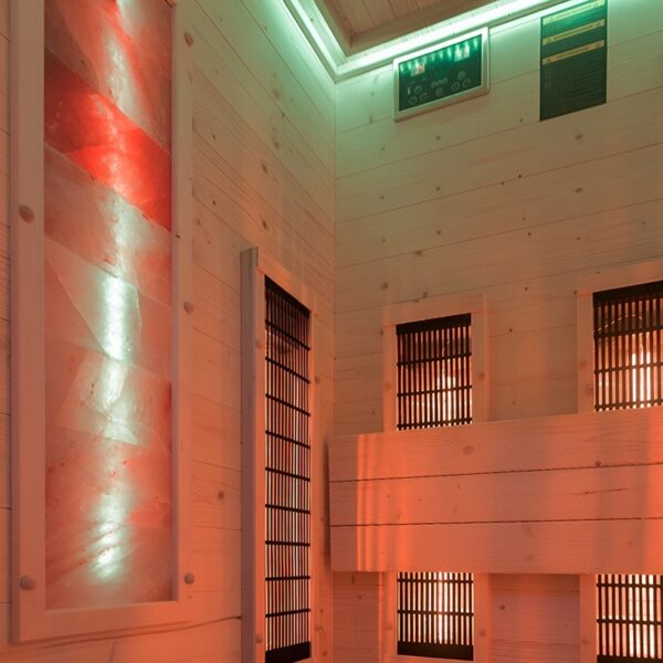 - Chromotherapy: multi-colour LED ceiling lighting + salt panel (7 colours)
