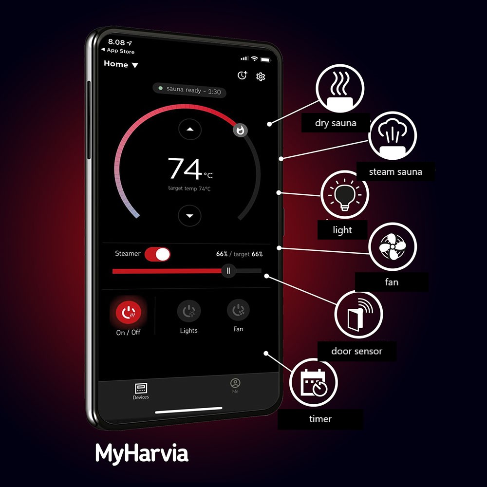 – Lighting and fan control: Full control over additional sauna functions for maximum comfort