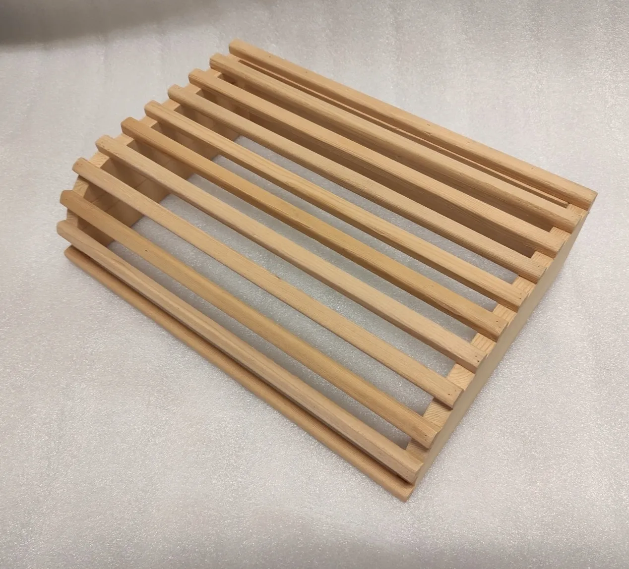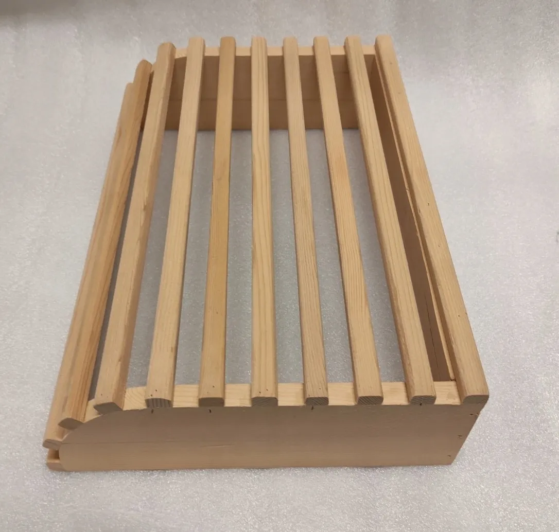 Wooden headrest for dry saunas with a stove or infrared