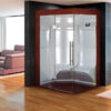 Modern steam sauna (steam bath) designed for indoor use, combining elegant design with practical functionality. Its compact dimensions and left-hand configuration make it ideal for a private bathroom or home wellness area.