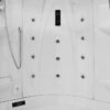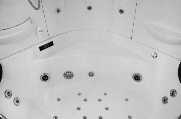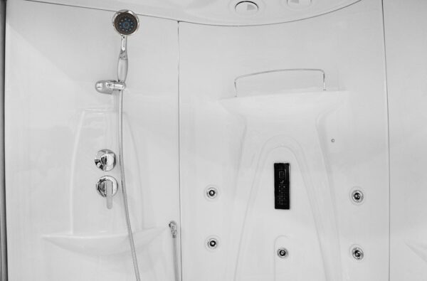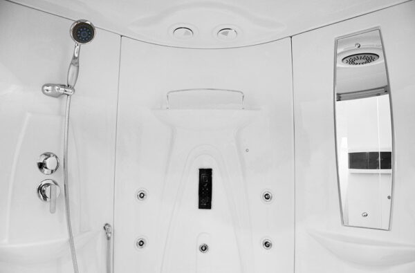 Shower bathtubs combine the functions of a shower cabin and a whirlpool tub. The bathtub has a water pump, an air pump, and underwater lighting. The shower cabin contains all the functions of a rain shower, a showerhead, shelves for cosmetics, and a jet for back massage.