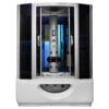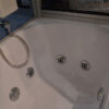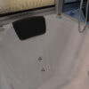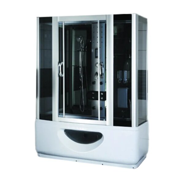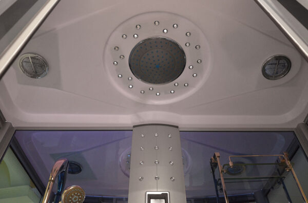 Bathtubs combine the functions of a shower cabin and a bathtub with hydro massage. The bathtub has a water pump, an air pump, and underwater lighting. The cabin contains all the functions of a rain shower, a showerhead, shelves for cosmetics, and a jet for back massage.