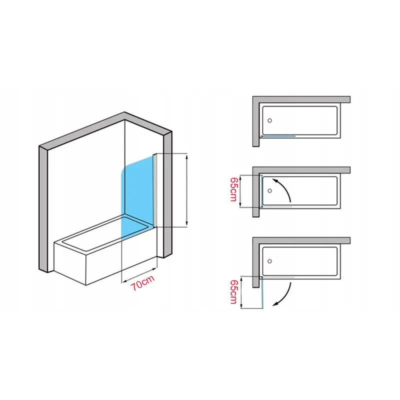The screen with dimensions of 100×140, which is mounted on the edge of the bathtub, provides an alternative to traditional shower cabins, combining the advantages of both the bathtub and the shower. Not only is this shower screen a practical bathroom fixture, but it also adds a beautiful touch to a modern bathroom. Made of thick 6-millimeter tempered glass and chrome-plated profile, it ensures exceptional durability and easy maintenance.