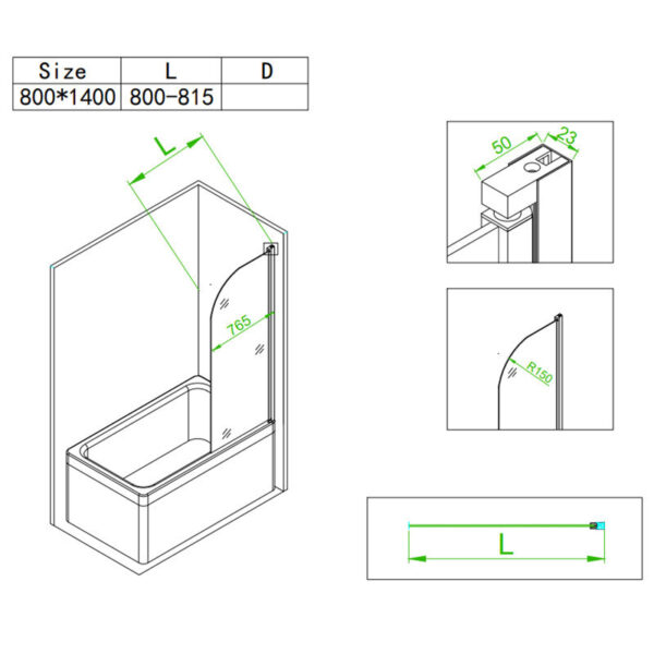 The screen with dimensions of 800×1400, which is mounted on the bathtub’s edge, provides an alternative to traditional shower cabins, combining the advantages of both the bathtub and the shower. Not only is this shower screen a practical bathroom fixture, but it also adds a beautiful touch to a modern bathroom. Made of thick 6-millimeter tempered glass and a chrome-plated profile, it ensures exceptional durability and easy maintenance.