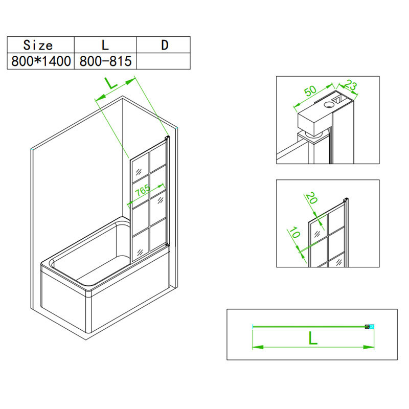 The screen with dimensions of 100×140, which is mounted on the edge of the bathtub, provides an alternative to traditional shower cabins, combining the advantages of both the bathtub and the shower. Not only is this shower screen a practical bathroom fixture, but it also adds a beautiful touch to a modern bathroom. Made of thick 6-millimeter tempered glass and chrome-plated profile, it ensures exceptional durability and easy maintenance.