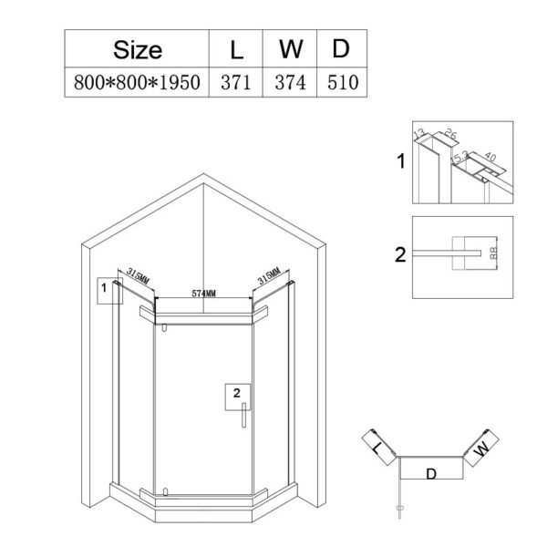 Pentagonal Shower Cabin KZ91A Chrome 800x800mm