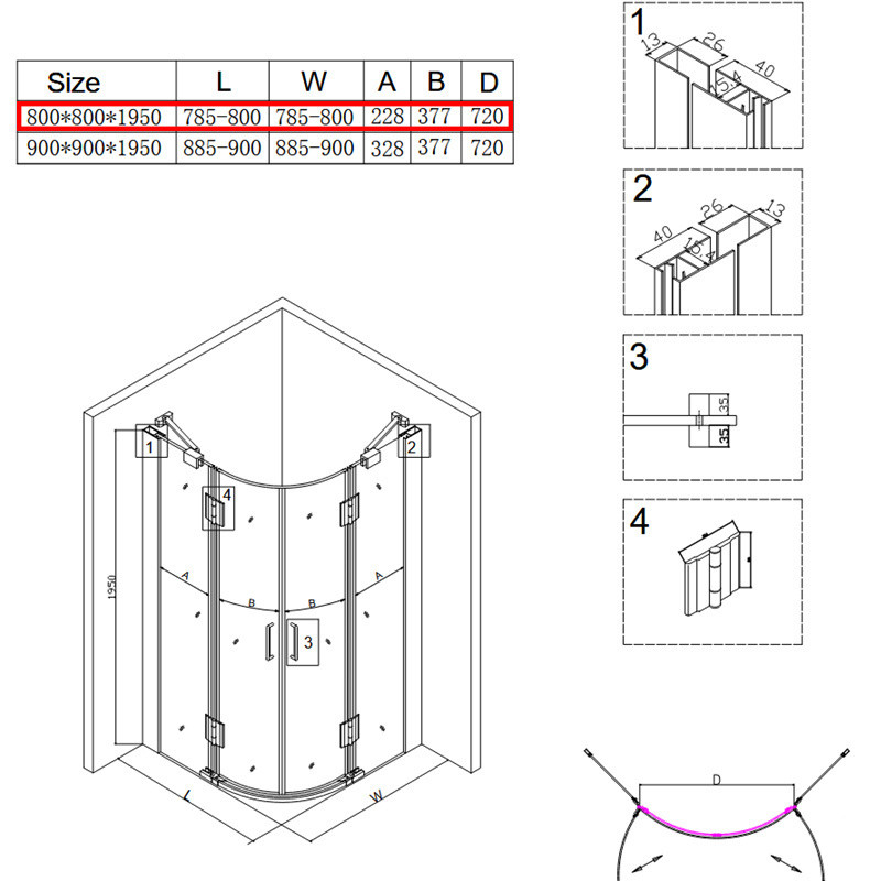 size: 800x800x1950mm