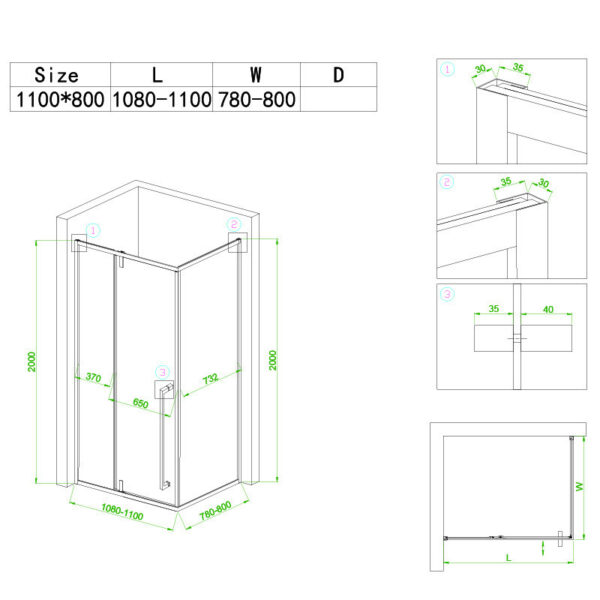 In all shower cabins, we have used profiles that give you the opportunity to compensate for wall unevenness up to 20mm. The adjustment range has been designed in such a way that, on the one hand, it enables the product to be adapted to the curvature of the walls. On the other hand, it facilitates optimal adjustment of the product in relation to the shower tray or floor.