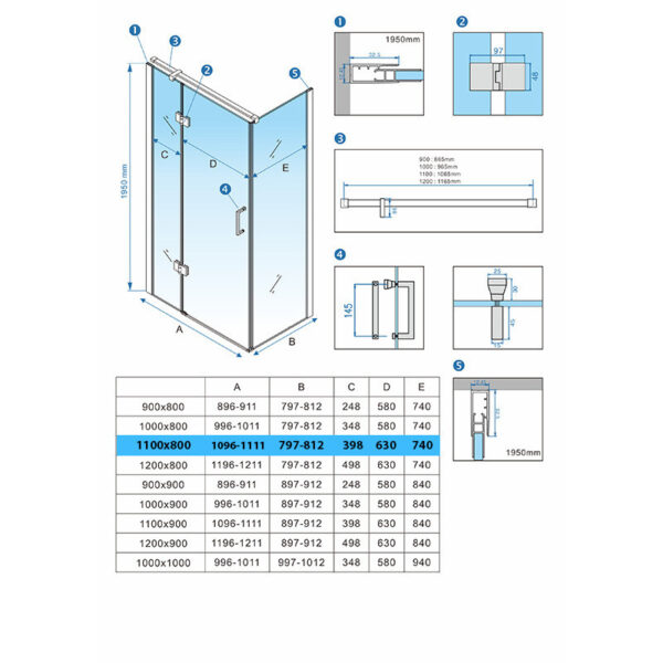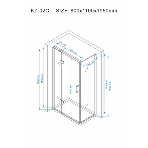 Square shower cabin S-KZ02C chrome 1100x800mm