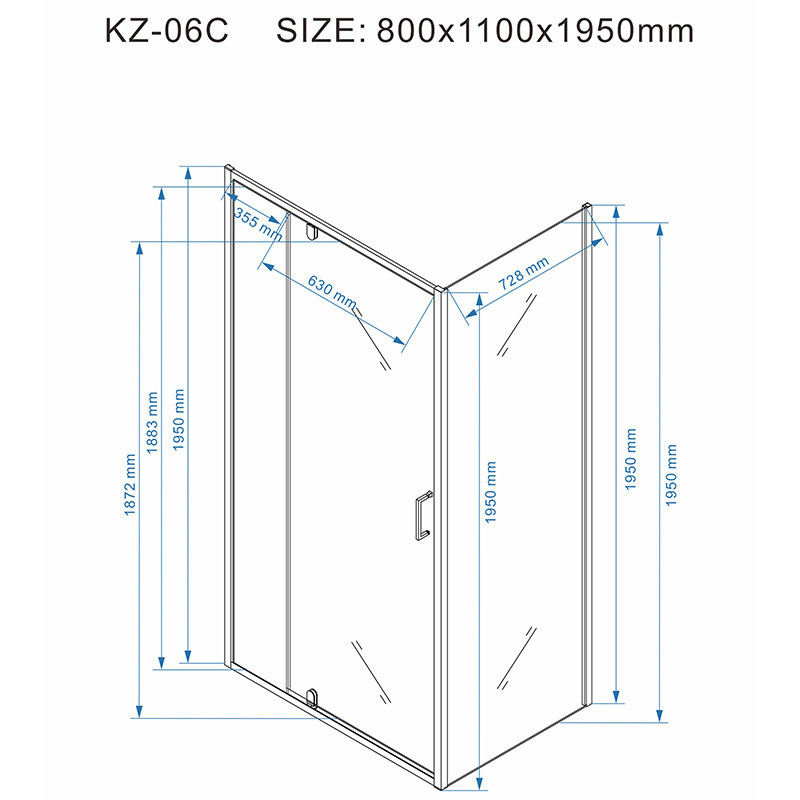 Square shower cabin S-KZ06C chrome 1100x800mm