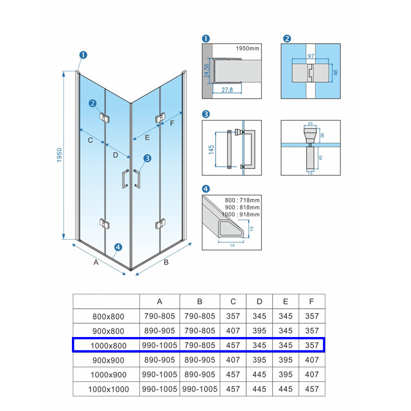 In all shower cabins, we have used profiles that give you the opportunity to compensate for wall unevenness up to 15mm. The adjustment range has been designed in such a way that, on the one hand, it enables the product to be adapted to the curvature of the walls. On the other hand, it facilitates optimal adjustment of the product in relation to the shower tray or floor.