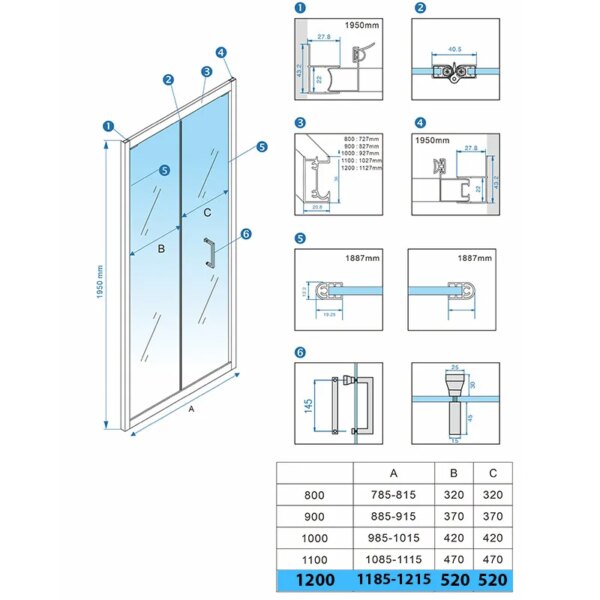- Possibility to adjust the length of the shower door to smaller sizes by up to 50mm! The upper profile should be shortened by yourself ONLY AND ONLY from the side of the door (the rail on which the rollers run, by cutting it to any length).