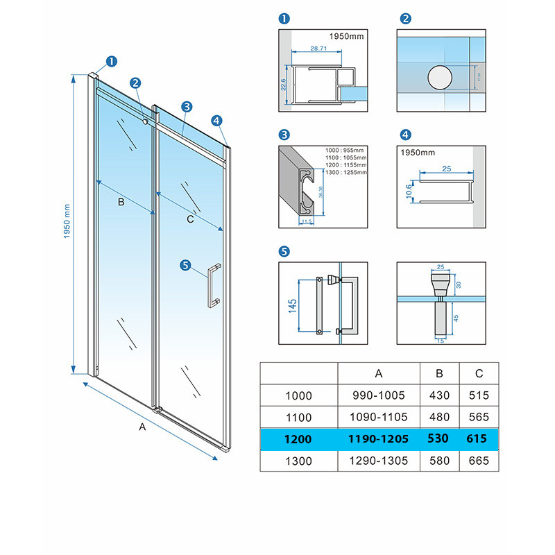Adjustment range: 1150-1200mm