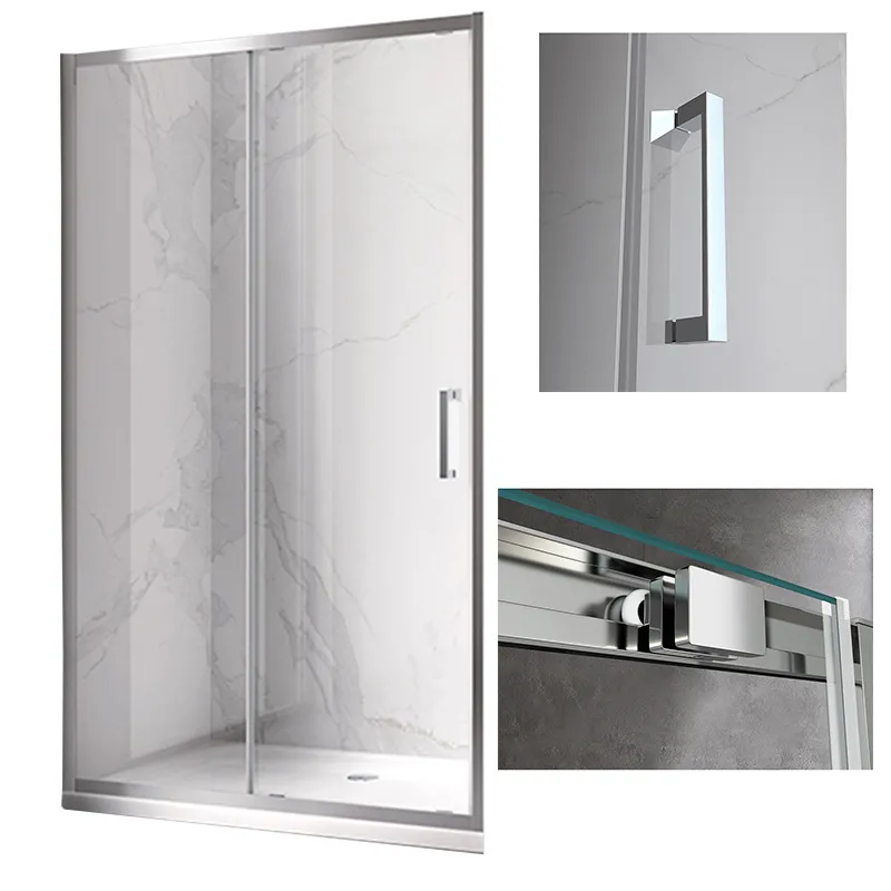 - Possibility to adjust the length of the shower door to smaller sizes by up to 50mm! The upper profile should be shortened by yourself ONLY AND ONLY from the side of the door (the rail on which the rollers run, by cutting it to any length).