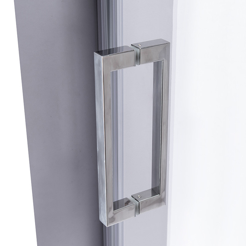 - Possibility to adjust the length of the shower door to smaller sizes by up to 50mm! The upper profile should be shortened by yourself ONLY AND ONLY from the side of the door (the rail on which the rollers run, by cutting it to any length).