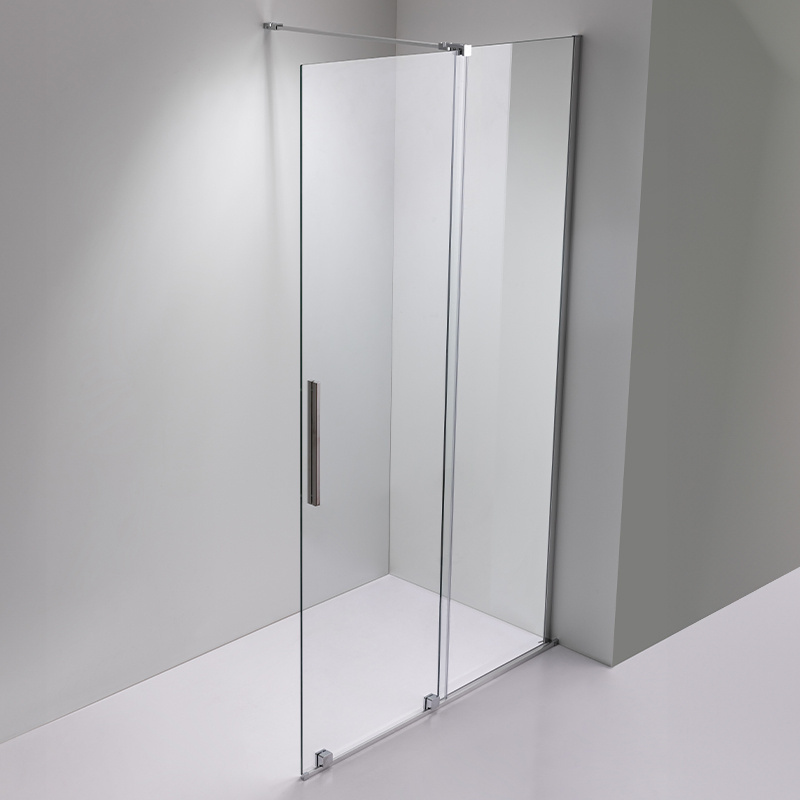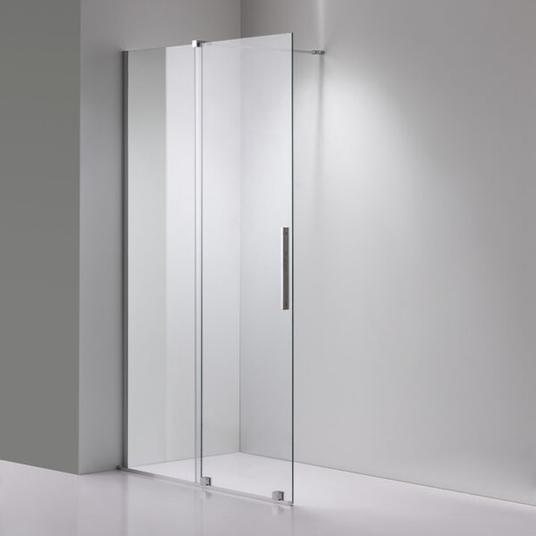 The sliding system does not require extra opening space, unlike hinged doors, making it ideal for compact bathrooms.