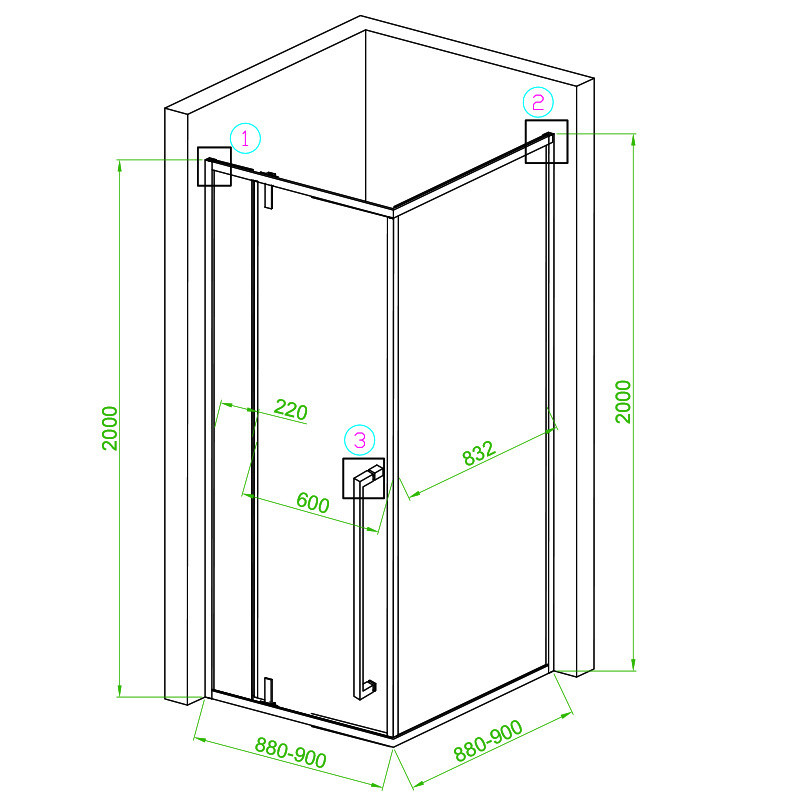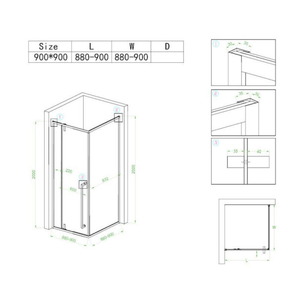 size: 900x900x2000mm