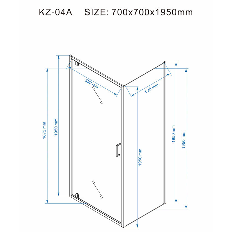 Square shower cabin R-KZ04A Chrome 700x700mm