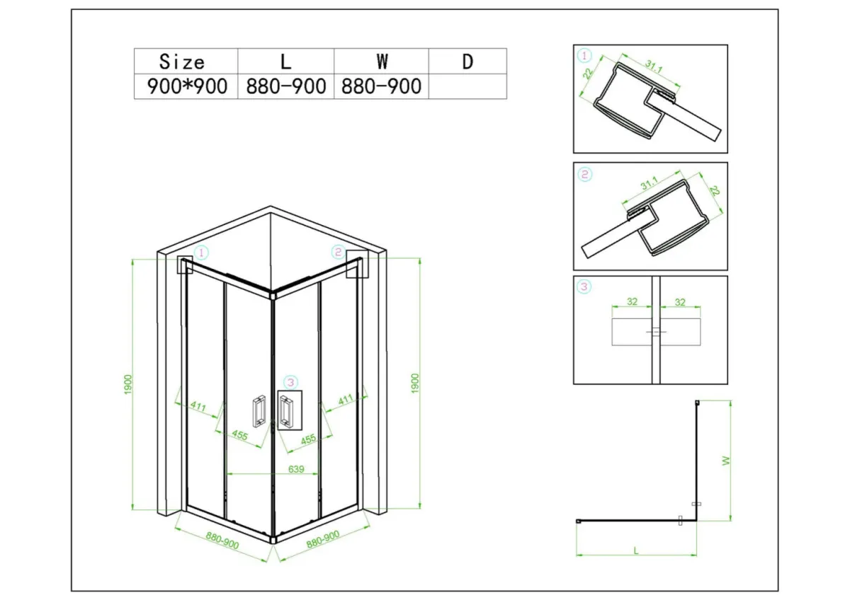 size: 900x900x1900 mm