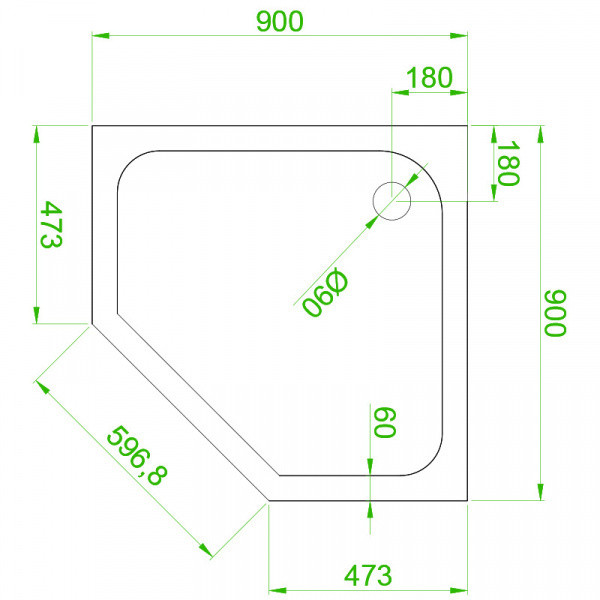 Pentagonal shower tray ST07B 900x900mmblack siphon 50mm slim
