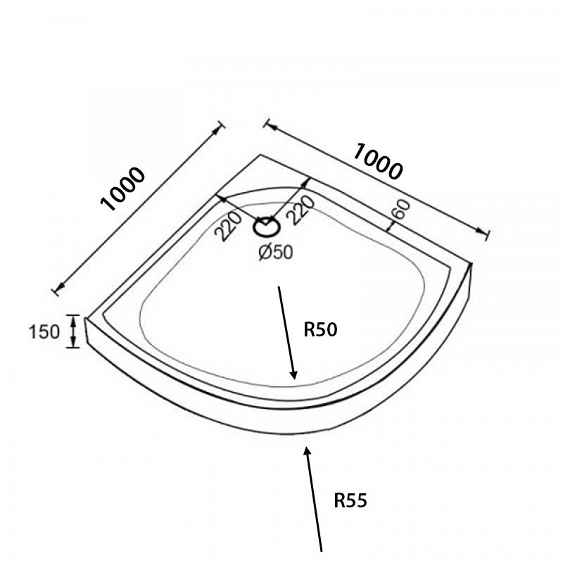 Quadrant shower tray for SXL01C 1000x1000mm with the siphon 150mm high