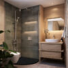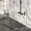 Ultra flat: The shower tray, whose low threshold is an undoubted advantage, attracts attention with its functionality. It was designed to make using the shower as easy as possible, eliminating the need to climb onto a high threshold or take a dangerous step when entering or exiting. This solution is particularly beneficial for people with limited mobility, the elderly or families with small children, as it minimizes the risk of trips and falls.