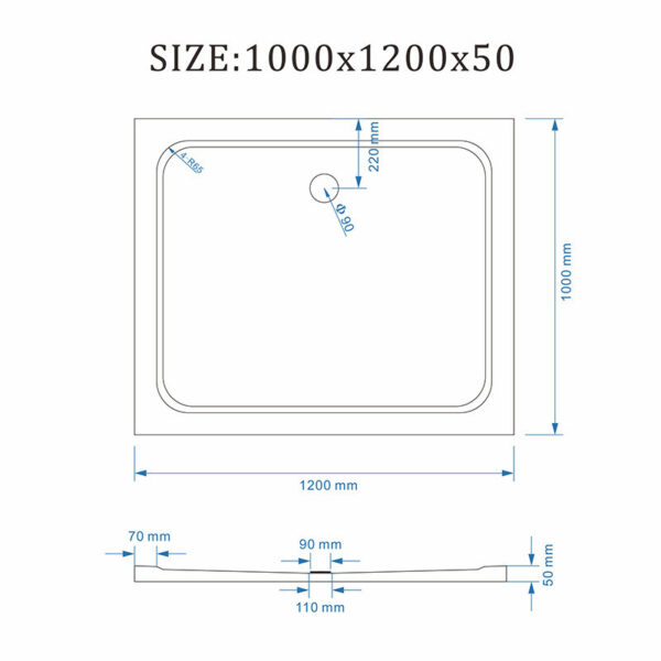 Rectangular shower tray 1200x1000mm ST06C white siphon 5cm slim