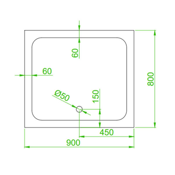 Rectangular shower tray 900×800 SXL03B black siphon 150mm high