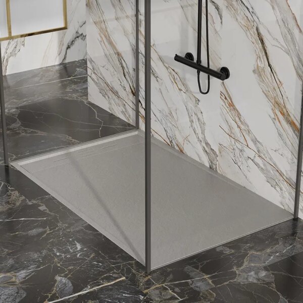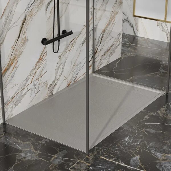 CADO Rectangular Stone Shower Tray Slim 1200x900x30mm Grey with Siphon
