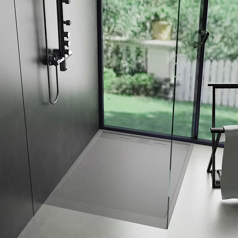 CADO shower trays by Crystal Bathroom are made using mineral acrylic strengthened with thermosetting polyester resin and glass fiber (25–50%). This ensures outstanding durability and lightweight handling, while still offering full customization via trimming.